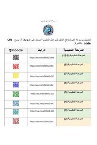 لتحميل موسوعة القيم لمناهج التعليم للمراحل التعليمية اضغط على الروابط، أو بمسح QR code بالكامرة: